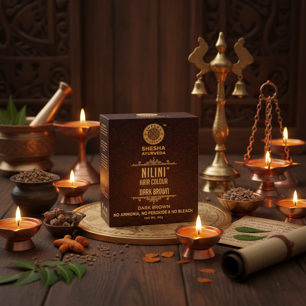 ‘Nilini’ is an 'Ayurvedic’ hair coloring kit that helps to add color(Dark Brown), shine and lustre to hair. Nilini is created to simplify and shorten the usual hair color process that involves application of henna and indigo separately which is a time consuming process. NO Bleach, NO Ammonia, NO Peroxides, NO Perborates